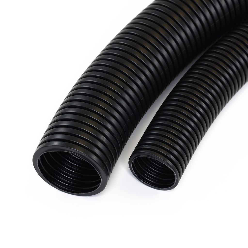 Flexible polypropylene black conduit for the bundling and protection of cables. Ideal for cable assemblies, underfloor wiring and general cable tidying. / Material: Polypropylene / Internal Diameter: 6.5mm - 35mm / External Diameter: 9mm - 40mm / Working Temperature: -40°C to 135°C / Colour: Black / Reel Length: 25m -100m / Thickness: 0.25mm-0.35mm / Flame Retardant / UL Approved / RoHS Compliant